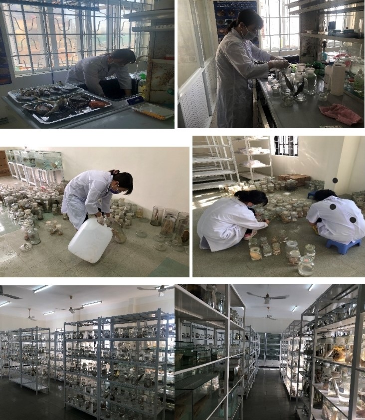 Hình ảnh về xử lý và bảo quản mẫu lâu dài tại phòng lưu mẫu sinh học - Chi nhánh Ven biển.