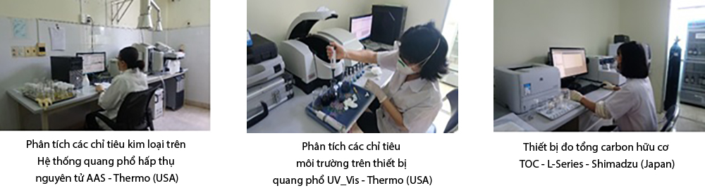 - Thiết bị phân tích: Hệ thống quang phổ hấp thụ nguyên tử AAS (F, HG, GF) - model iCE 3500, Thermo Scientific (USA); Thiết bị quang phổ tử ngoại khả kiến UV_Vis - EV 300, Thermo Scientific (USA); Thiết bị đo tổng carbon hữu cơ trong mẫu lỏng, mẫu rắn TOC -L series, Shimadzu (Nhật).