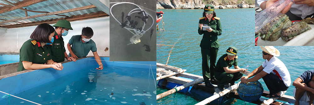 - Nghiên cứu sản xuất thử nghiệm giống và nuôi thương phẩm một số loài sinh vật có giá trị: cá ngựa đen, cá mú nghệ, tôm thẻ chân trắng, một số loại rong biển…