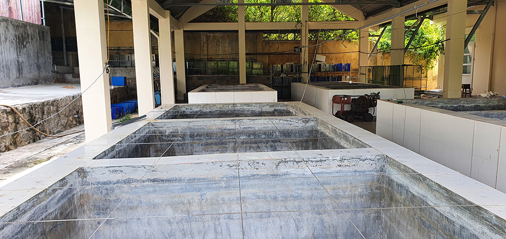 Khu vực nuôi trồng trong nhà mái che tại Trạm Nghiên cứu thử nghiệm biển (Đầm Báy)