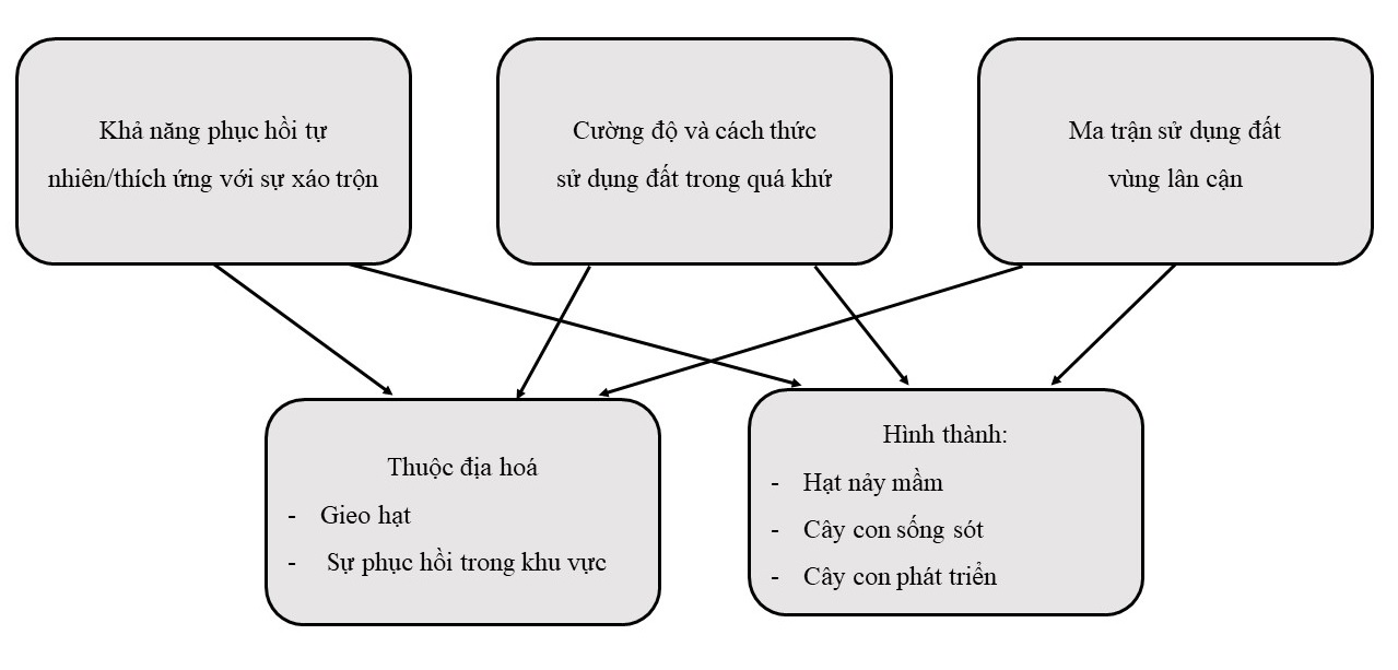 Hình 1: Các yếu tố ảnh hưởng đến phục hồi rừng nhiệt đới trên các vùng đất nông nghiệp.