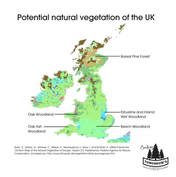 Thảm thực vật tự nhiên tiềm năng của Vương quốc Anh.