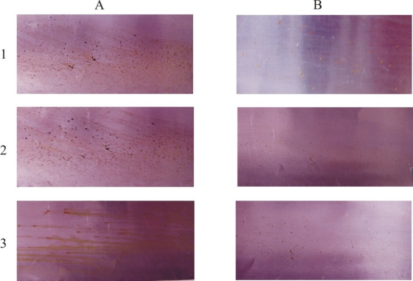 Dạng hình thành cặn trên các tấm sau 1, 2, 3 chu kỳ thử nghiệm: