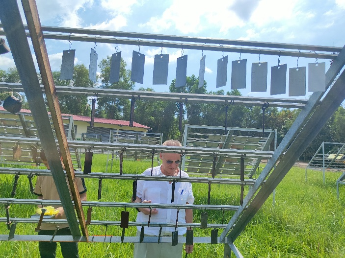 GS, TSKH Gaidar S.M và nhóm thực hiện đề tài T-1.16 tiến hành phơi mẫu và kiểm tra mẫu thử nghiệm tự nhiên tại Trạm NC,ƯD&TN Cần Giờ.