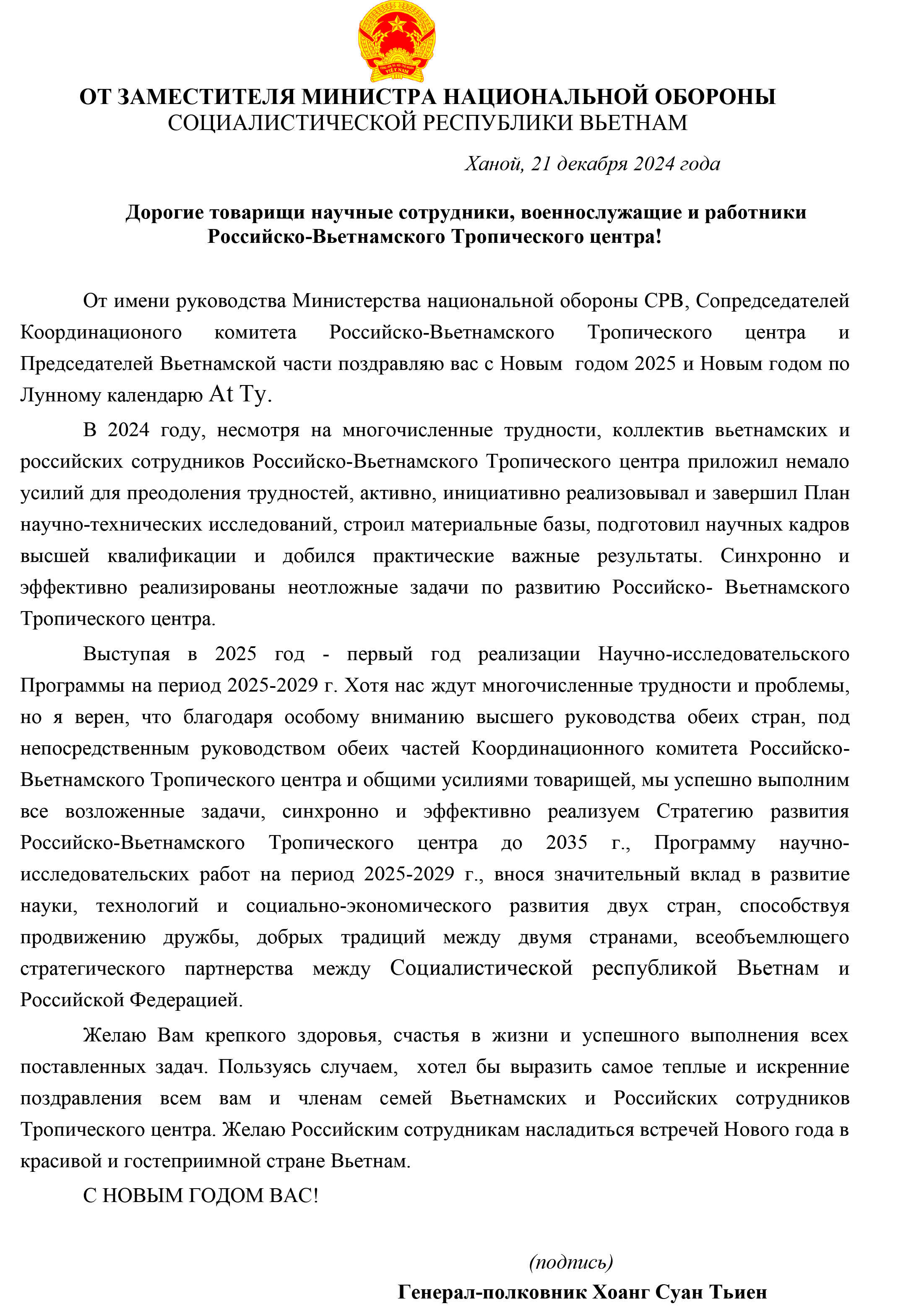 TRUNG TÂM NHIỆT ĐỚI VIỆT - NGA