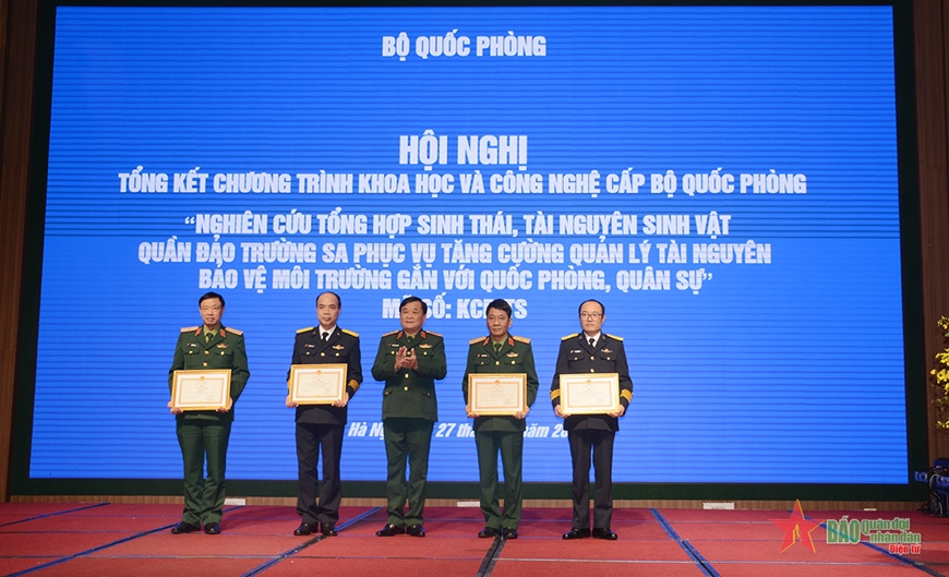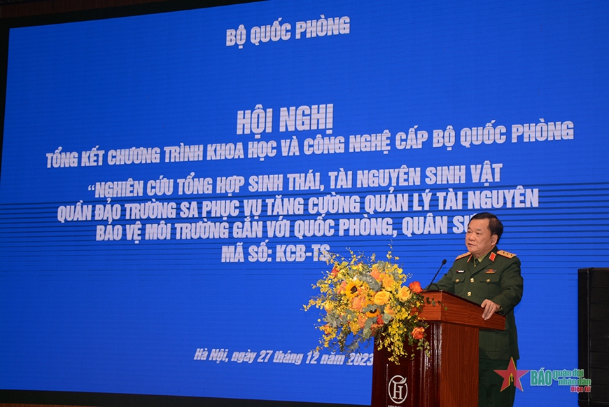 27/12/2023Sáng 27-12, tại Hà Nội diễn ra Hội nghị tổng kết Chương trình khoa học và công nghệ cấp Bộ Quốc phòng “Nghiên cứu tổng hợp sinh thái, tài nguyên sinh vật quần đảo Trường Sa phục vụ tăng cường quản lý tài nguyên, bảo vệ môi trường gắn với quốc phòng, quân sự”, mã số KCB-TS. Thượng tướng Hoàng Xuân Chiến, Ủy viên Trung ương Đảng, Thứ trưởng Bộ Quốc phòng chủ trì hội nghị.