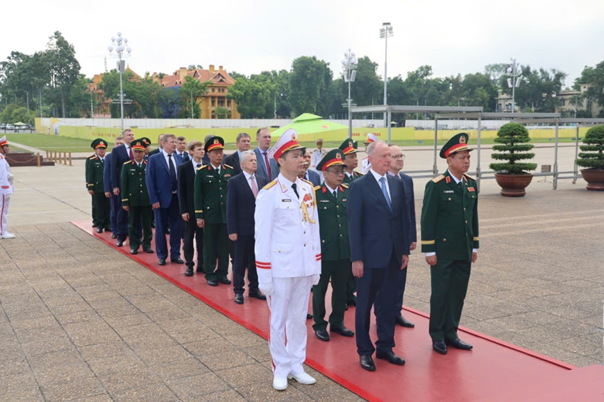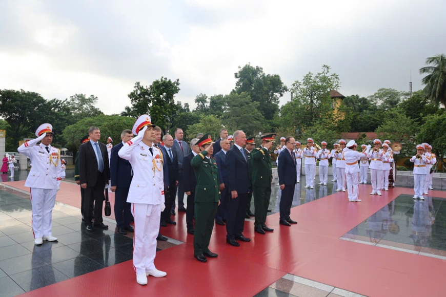 Trước đó, sáng 16-9, Trợ lý Tổng thống, Chủ tịch Hội đồng Biển LB Nga Nikolai Patrushev và đoàn đại biểu LB Nga đã tới đặt vòng hoa tại Đài tưởng niệm các Anh hùng liệt sĩ trên đường Bắc Sơn, đặt vòng hoa và vào Lăng viếng Chủ tịch Hồ Chí Minh.