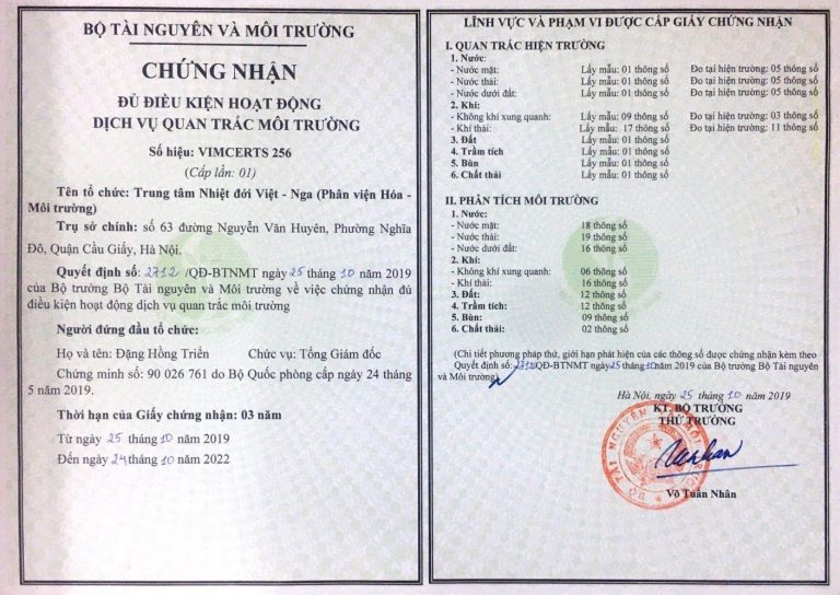 Thông tin chi tiết về một số hoạt động dịch vụ môi trường của Trung tâm Nhiệt đới Việt - Nga xem tại đây (link với trang https://emalab.com.vn/)