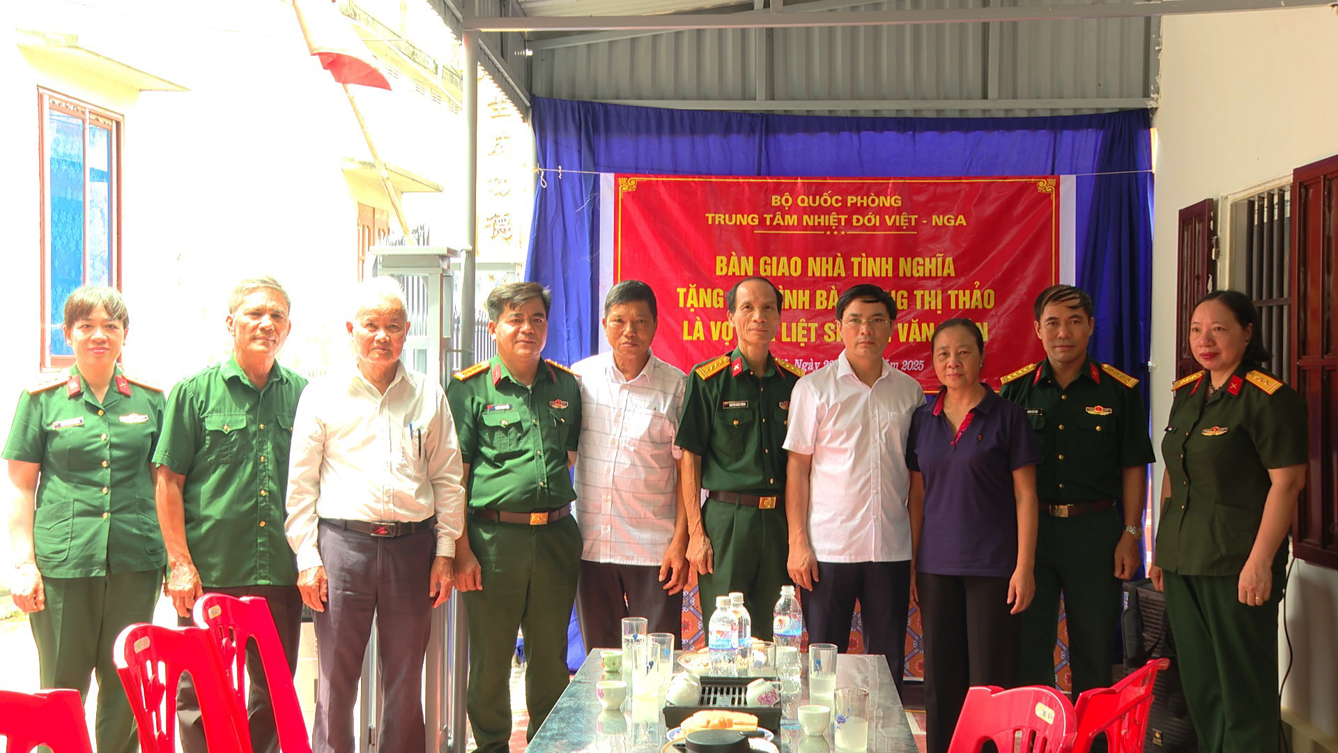 Đoàn công tác Trung tâm Nhiệt đới Việt - Nga trao nhà tình nghĩa tặng gia đình bà Hoàng Thị Thảo.