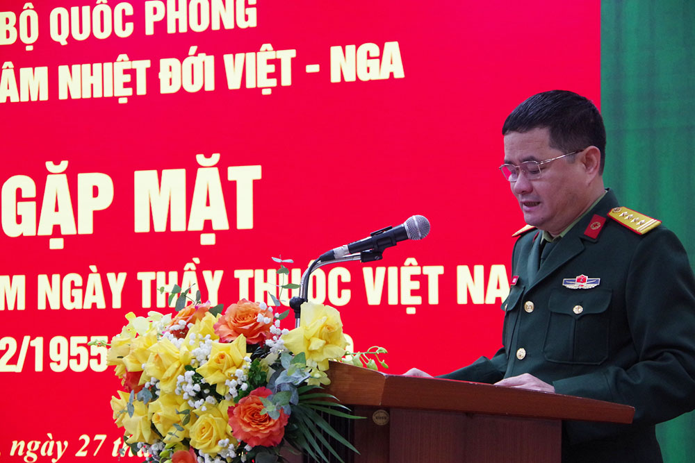 Trong khuôn khổ buổi gặp mặt, đồng chí Đại tá Trịnh Khắc Sáu, Viện trưởng Viện Y sinh nhiệt đới đã đọc Thư chúc mừng của Bộ trưởng Bộ Quốc phòng gửi cán bộ, nhân viên, học viên, chiến sĩ ngành Quân y nhân dịp kỷ niệm 71 năm Ngày Thầy thuốc Việt Nam.