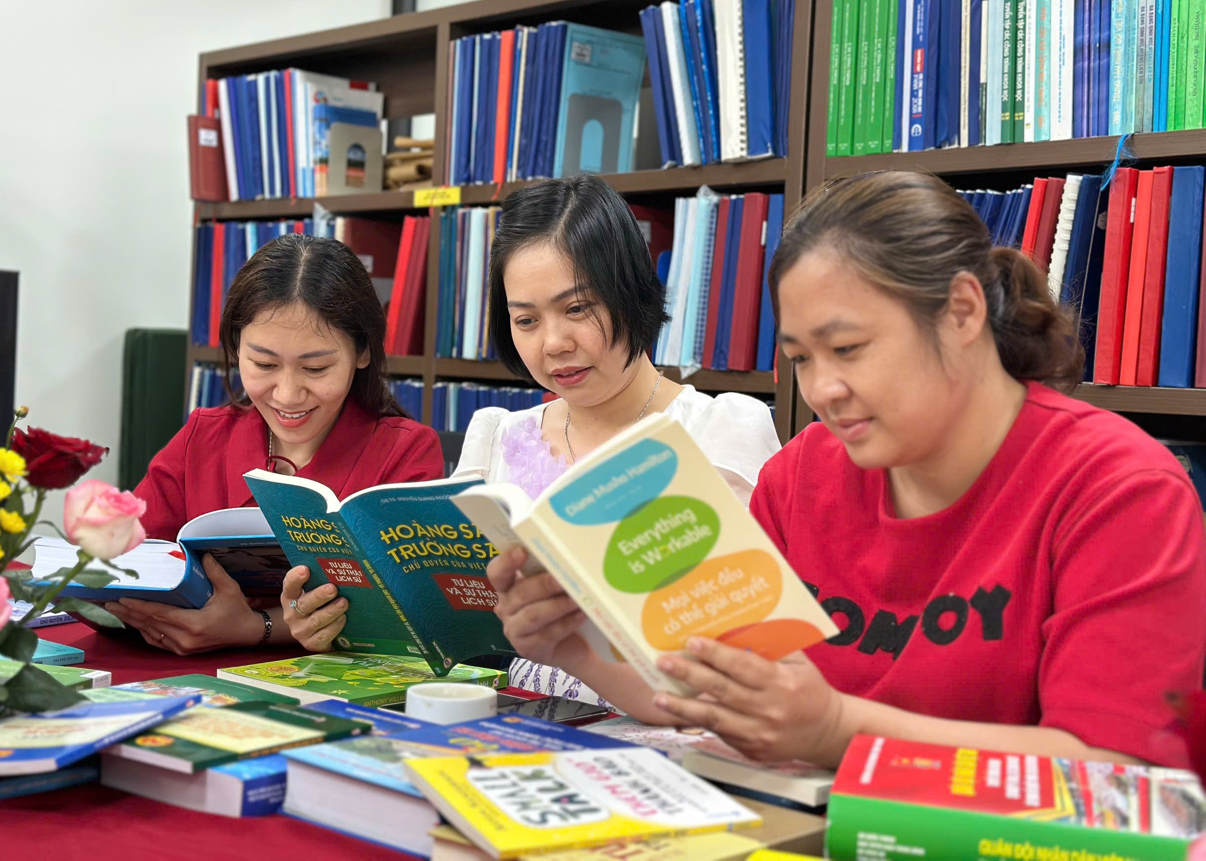 Không gian trưng bày không chỉ là nơi giới thiệu tri thức mà còn là nơi kết nối, chia sẻ cảm hứng đọc sách giữa bạn đọc trong toàn Trung tâm.