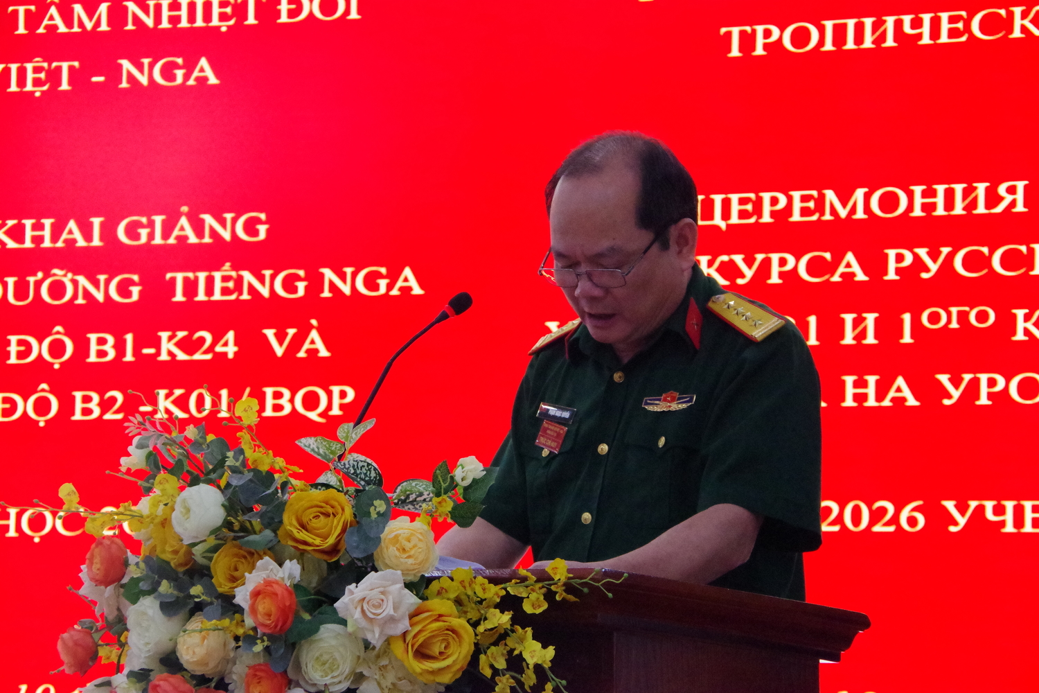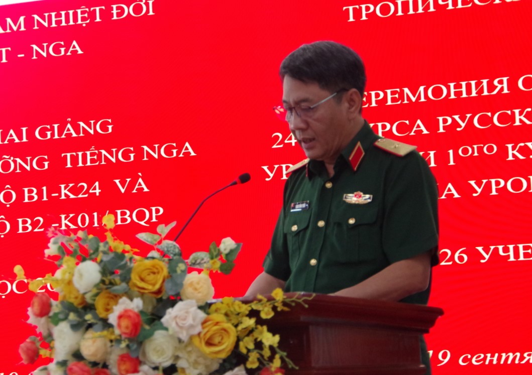 Trong diễn văn khai giảng, Đại tá Phạm Ngọc Quyền, Trưởng phòng Đào tạo cho biết: Tiếp nối thành công những năm học trước, năm học 2025-2026, Trung tâm được Thủ trưởng Bộ Quốc phòng giao nhiệm vụ bồi dưỡng tiếng Nga trình độ bậc 3 (tương đương B1 quốc tế), và đặc biệt, đây là năm đầu tiên Trung tâm được giao triển khai khóa bồi dưỡng tiếng Nga trình độ B2 quốc tế cho cán bộ, sĩ quan. Đồng chí khẳng định, Phòng Đào tạo đã chuẩn bị chu đáo về chương trình, giáo trình, đội ngũ giảng viên, cũng như cơ sở vật chất, sẵn sàng đáp ứng yêu cầu của khóa học mới.