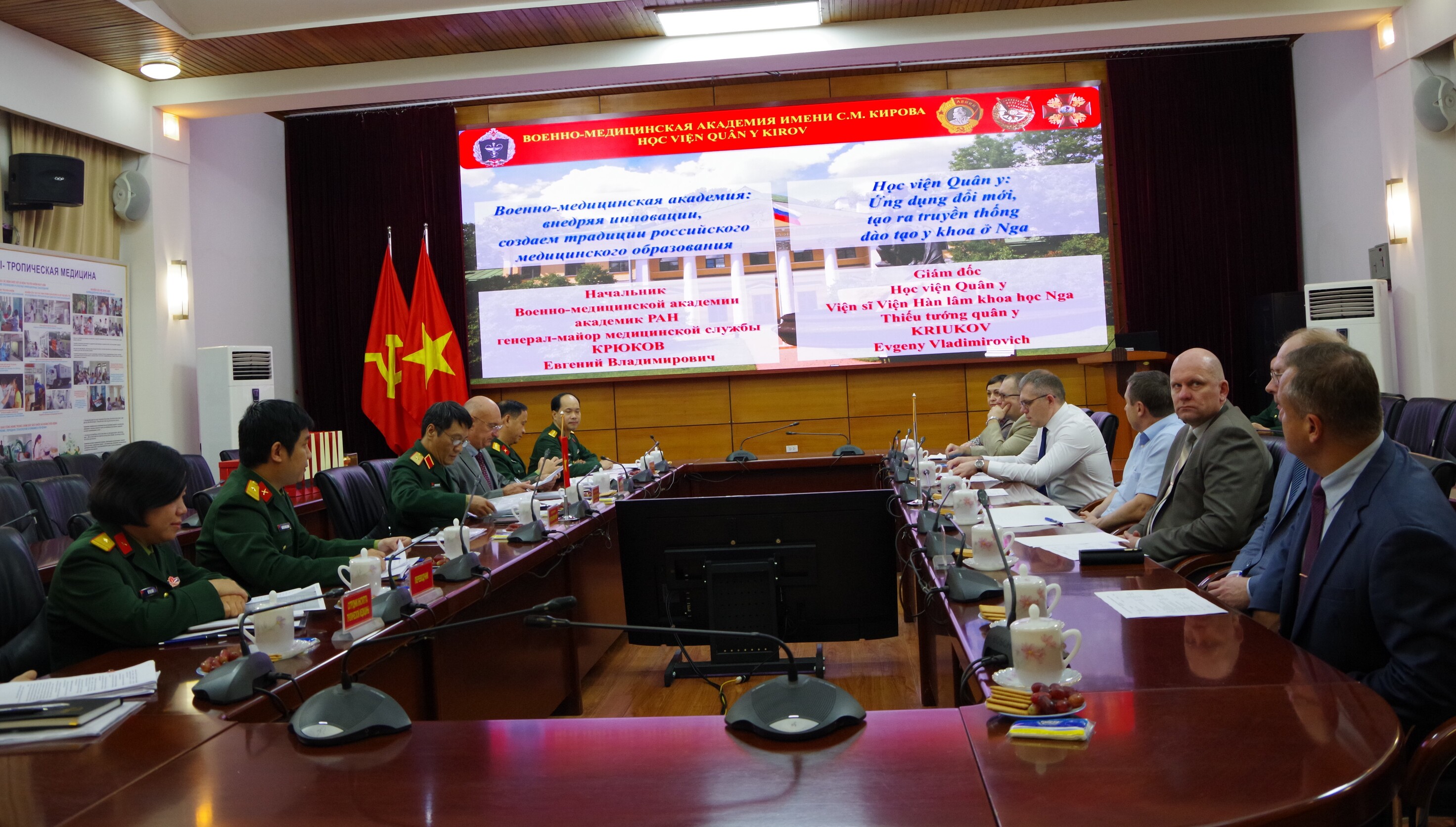 Cũng trong khuôn khổ chuyến công tác của Học viện Quân y Kirov tại Việt Nam, Trung tâm hỗ trợ và tham dự các buổi làm việc của Đoàn Học viện Quân y Kirov với Cục Quân y và Học viện Quân y.