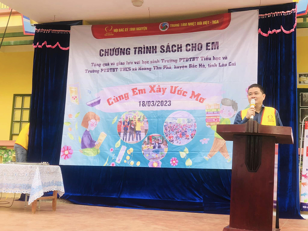 21/03/2023Ngày 18 tháng 3 năm 2023, Đoàn Thanh niên, Hội Phụ nữ, Công đoàn cơ sở Cơ sở chính/Trung tâm Nhiệt đới (TTNĐ) Việt-Nga đã phối hợp với Hội Bác sỹ tình nguyện tổ chức thực hiện chương trình “Sách cho em” tặng sách, vở, đồ dùng học tập cho các em học sinh và chương trình “Chung sức vì sức khỏe cộng đồng” khám chữa bệnh nhân đạo, cấp phát thuốc miễn phí cho người dân xã Hoàng Thu Phố, huyện Bắc Hà, tỉnh Lào Cai.