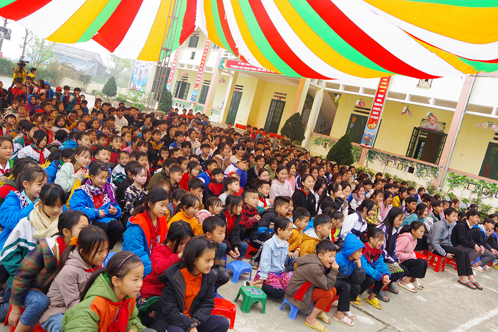 Các em học sinh Trường Phổ thông dân tộc bán trú Tiểu học và Trường Phổ thông dân tộc bán trú THCS xã Hoàng Thu Phố, huyện Bắc Hà, tỉnh Lào Cai