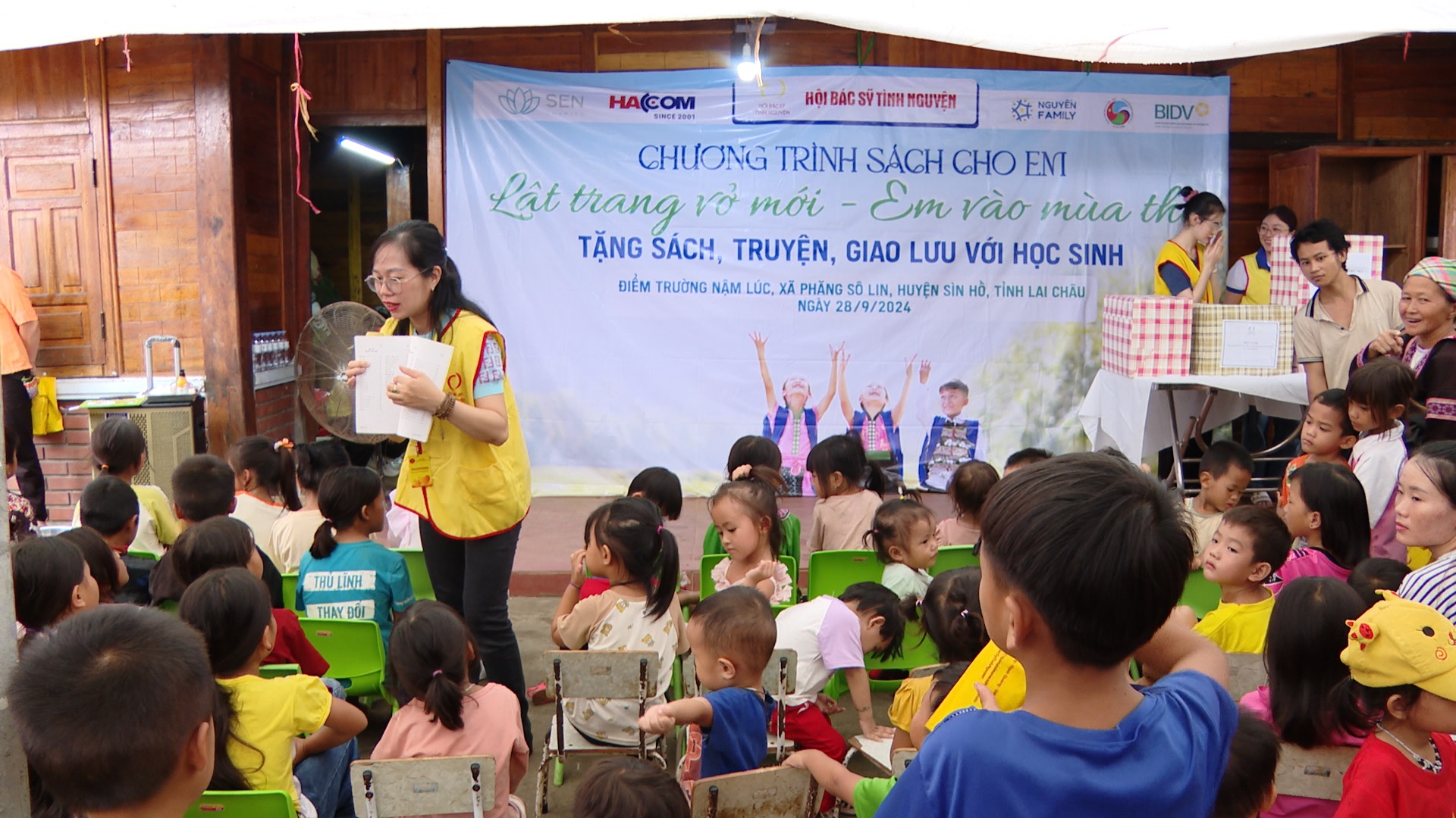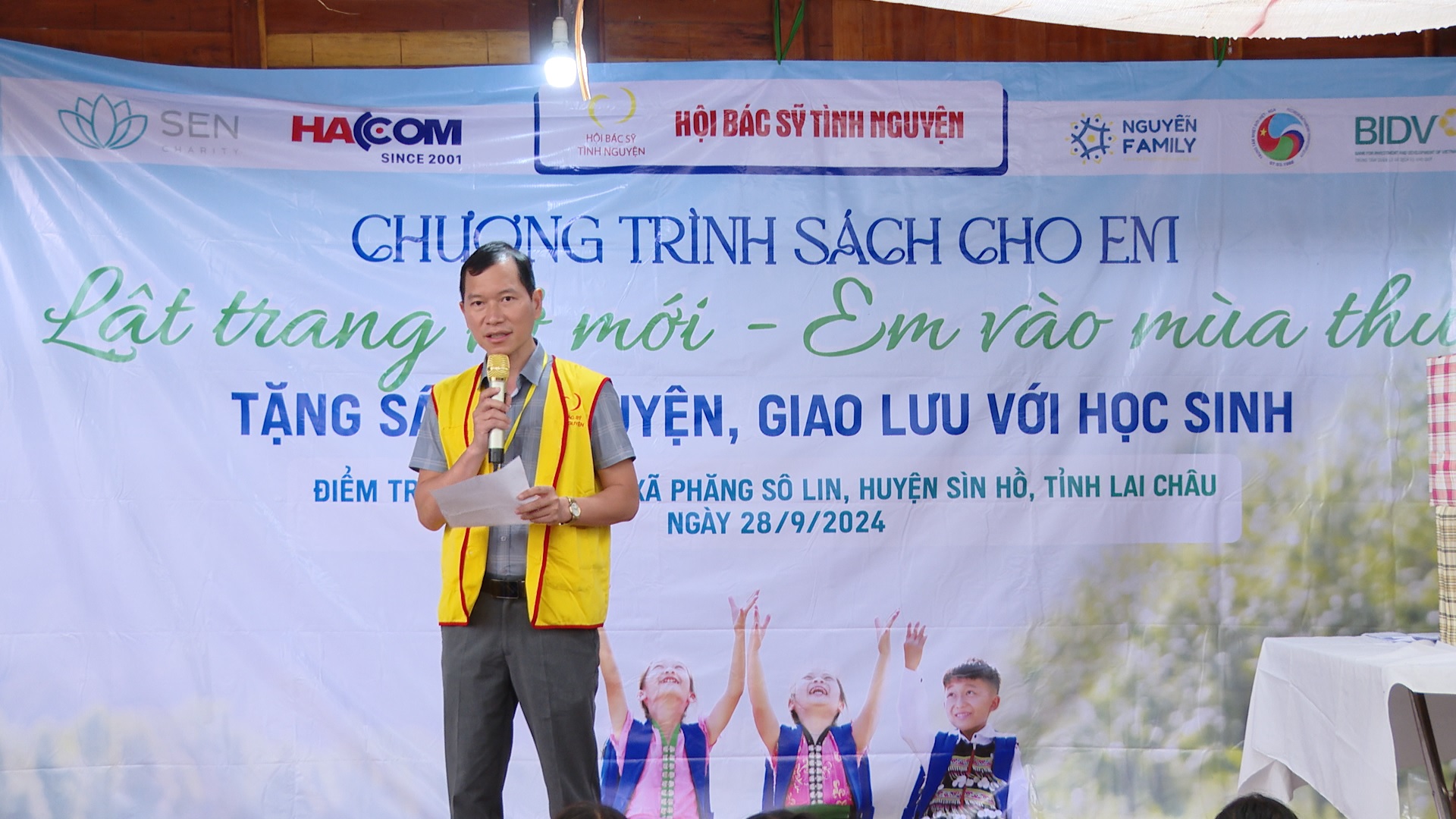 Vượt qua hàng trăm km đường núi, dốc đèo thăm thẳm, nhiều đoạn mặt đường còn gồ ghề, khúc khuỷu, sạt lở sau cơn bão số 3 (Yagi), nhưng với tinh thần và sự quyết tâm vượt khó, cả đoàn thiện nguyện đã đến nơi an toàn. Sáng ngày 28/9, Bác sỹ Nguyễn Thành Trung, Giám đốc Trung tâm Nghiên cứu và Điều trị kỹ thuật cao/Viện Y sinh nhiệt đới - Trưởng đoàn của Trung tâm đã phát biểu khai mạc chương trình “Sách cho em” với mong muốn chia sẻ những kiến thức bổ ích về văn hoá đọc cho các em học sinh, hướng các em có lòng đam mê và tình yêu đối với sách, đánh thức được giấc mơ và giúp các em có thêm niềm tin để vượt qua những khó khăn tại vùng đất Sìn Hồ xa xôi.
