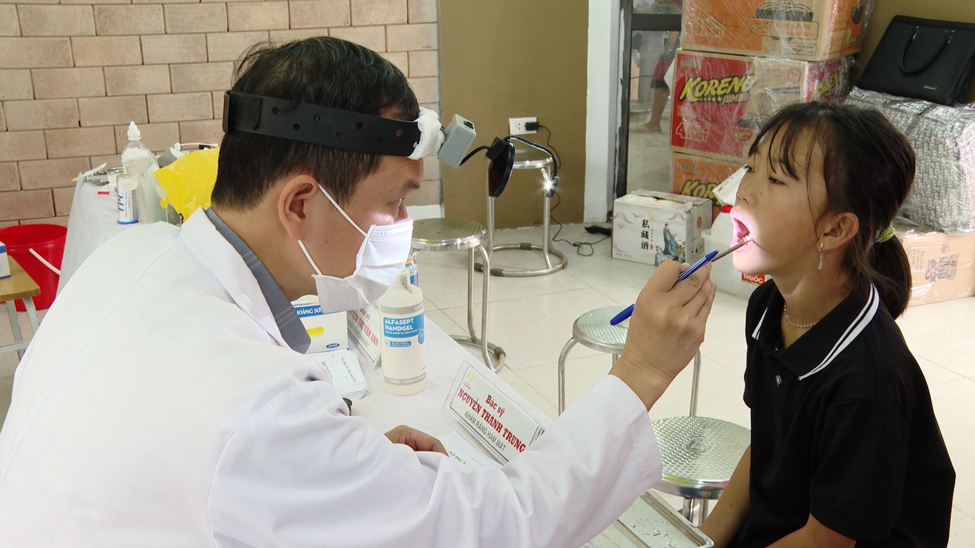 Bác sỹ Viện Y sinh nhiệt đới khám bệnh cho nhân dân.