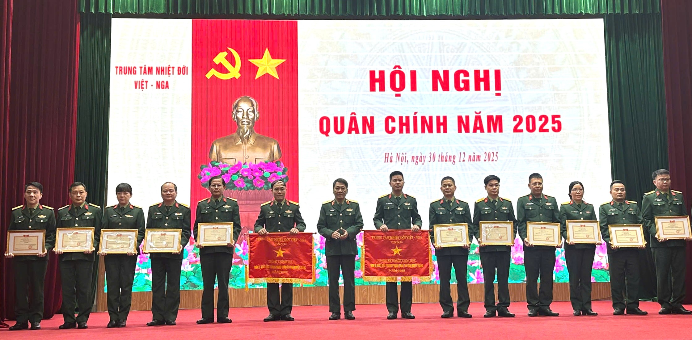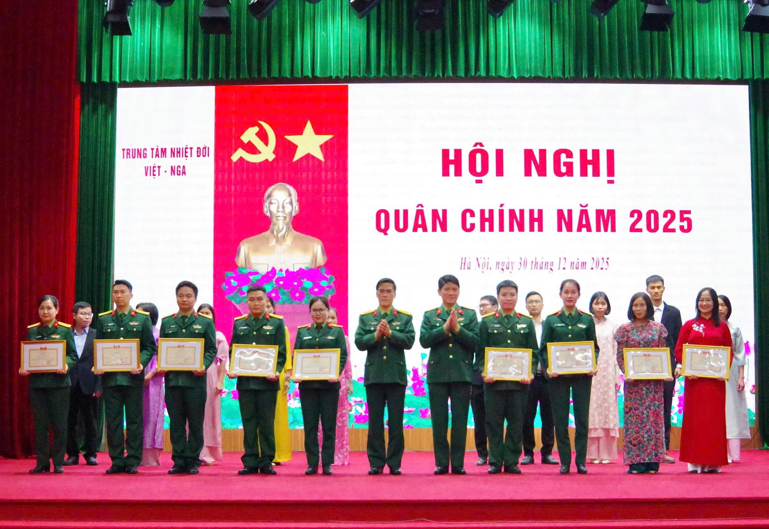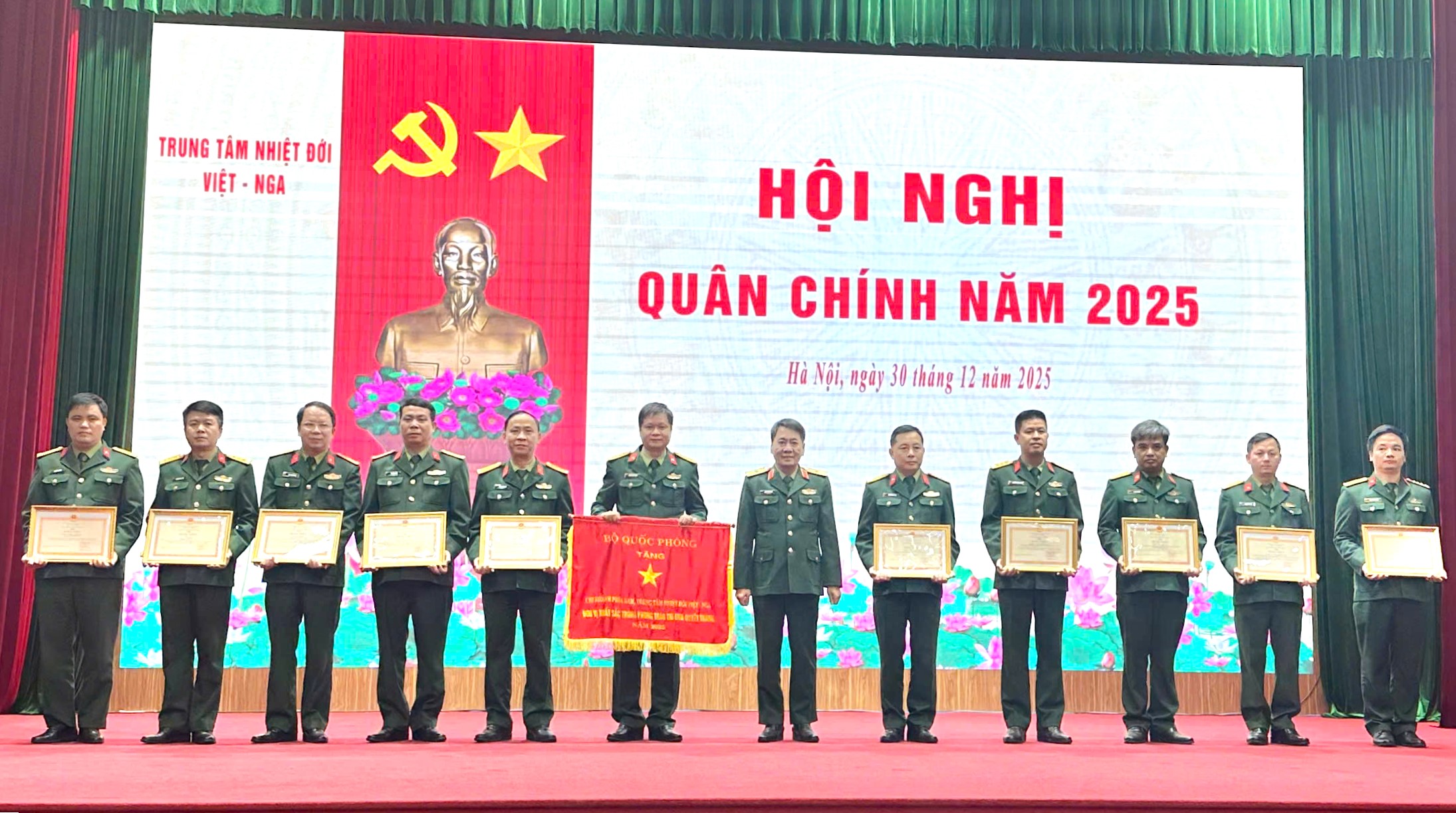 Cũng trong khuôn khổ Hội nghị, thừa ủy quyền của Bộ trưởng Bộ Quốc phòng, Thủ trưởng Trung tâm đã trao Cờ Thi đua, Bằng khen của Bộ trưởng Bộ Quốc phòng cho các tập thể, cá nhân có thành tích xuất sắc; đồng thời trao các phần thưởng cấp Trung tâm cho các tập thể, cá nhân hoàn thành xuất sắc nhiệm vụ năm 2025./.