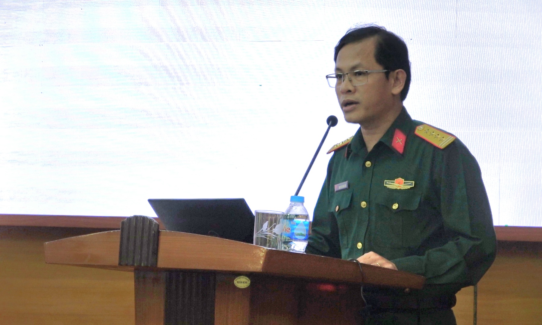 Đồng chí Đại tá Nguyễn Đăng Hội phát biểu khai mạc Hội thảo.