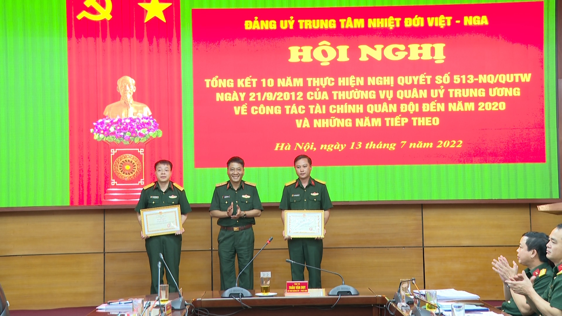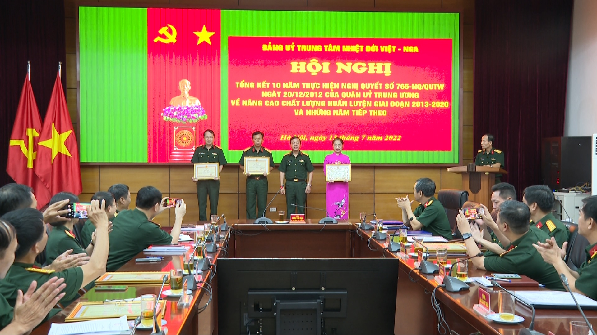 14/07/2022Ngày 13-7, Đảng ủy Trung tâm Nhiệt đới Việt - Nga tổ chức các Hội nghị: Hội nghị tổng kết 10 năm thực hiện Nghị quyết số 513-NQ/QUTW ngày 21/9/2012 về công tác tài chính Quân đội; Nghị quyết 623-NQ/QUTW ngày 29/10/2012 về công tác hậu cần Quân đội; Nghị quyết 765-NQ/QUTW ngày 20/12/2012 về nâng cao chất lượng huấn luyện đến năm 2020 và những năm tiếp theo.