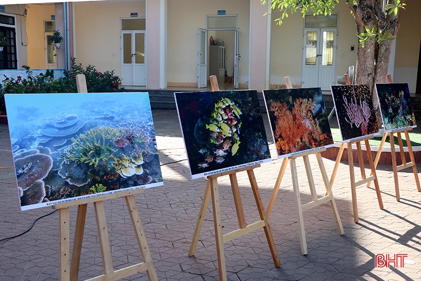 Tại chương trình, Trung tâm Nhiệt đới Việt - Nga đã tiến hành trao tặng 9 bộ sưu tập gồm 10 ảnh về san hô cho 9 trường học: Các Trường Tiểu học Thạch Văn, Thạch Trị, Thạch Lạc, Thạch Hải, Đỉnh Bàn, Thạch Đài; Tiểu học và THCS Thạch Hội, THCS Đồng Tiến, THCS Lê Hồng Phong. Trong ảnh: Một số hình ảnh trong bộ sưu tập san hô được Trung tâm Nhiệt đới Việt - Nga trao tặng các nhà trường.