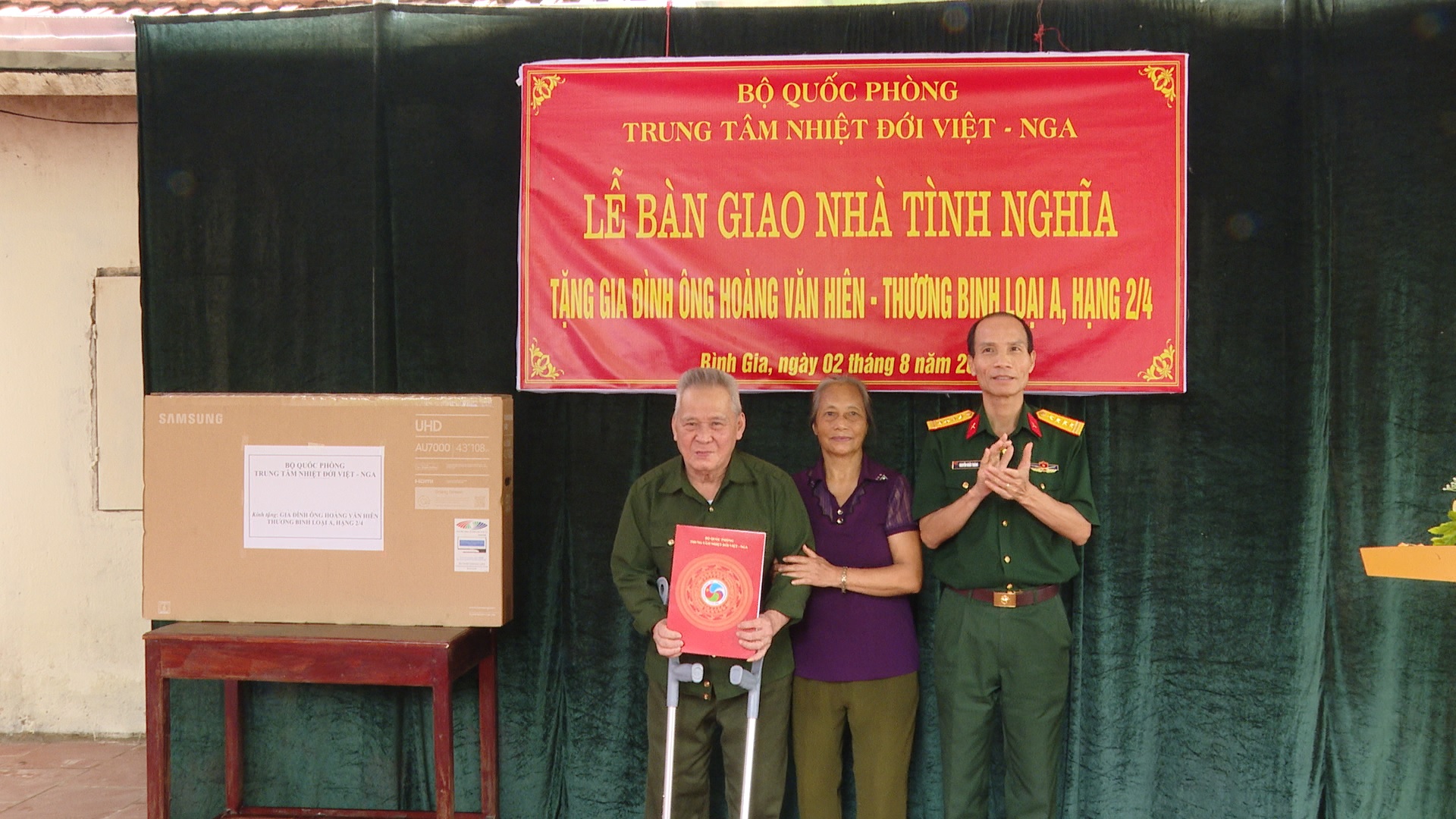 Phát biểu tại buổi bàn giao nhà, Đại tá Nguyễn Khắc Thăng, Phó Tổng Giám đốc Trung tâm nhấn mạnh: Thời gian qua, thực hiện chủ trương Nhà nước và nhân dân cùng làm, gia đình ông Hiên, các cơ quan, đoàn thể, chính quyền địa phương đã cùng đóng góp công sức, kinh phí để xây dựng ngôi nhà. Đây là sự quan tâm của Nhà nước, Quân đội, TTNĐ Việt - Nga và địa phương đối với gia đình chính sách có hoàn cảnh khó khăn, là sự tri ân sâu sắc đối với đồng chí Hoàng Văn Hiên, đồng thời thể hiện đạo lý uống nước nhớ nguồn của dân tộc ta đối với các thương bệnh binh, người có công với Cách mạng.