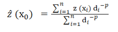 Thuật toán nội suy IDW có ưu điểm là tạo ra các bề mặt nội suy mượt mà và tính đến các tham số kích thước, số lượng điểm lấy mẫu và tham số lũy thừa, kiểm soát các điểm lân cận được gán trọng số trên các điểm nội suy. Phương pháp nội suy IDW ảnh hưởng bởi tham số lũy thừa (p) và số lượng điểm mẫu lân cận (n) được sử dụng. Thông thường, việc tìm kiếm giá trị p tối ưu là một quá trình tìm kiếm trên lưới: một khoảng giá trị của p cụ thể được thiết lập tùy ý hoặc dựa trên trực giác của nhà nghiên cứu, sau đó p sẽ lấy tất cả các giá trị trong khoảng đó, với một bước nhảy nhất định được chọn tùy ý [7]. Ứng với giá trị p có sai số thấp nhất trong số các giá trị được tìm kiếm sẽ được lựa chọn để gán cho tham số này. Khi tham số p thấp sẽ làm mượt bề mặt nội suy, và giá trị trọng số cao sẽ đặt nhiều trọng số hơn vào các điểm đã biết gần nhất, khiến bề mặt nội suy ít mượt mà hơn.